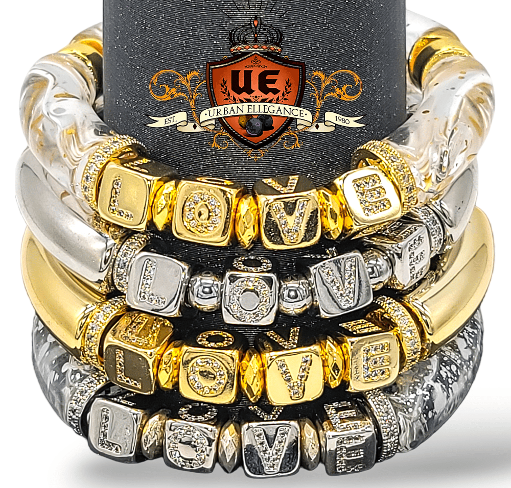 I joined the Acrylic tube craze awhile back im an attempt to elevate it. It's such a fun, lightweight, eye catching, complimentary piece. I added Micro Pavé letterblocks (metal) and goldlraf and silver highlights.